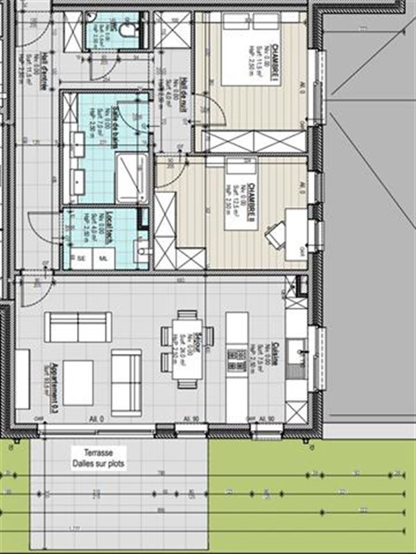 Possibilité d'obtenir une terrasse de 85m² sous réserve de l'obtention de l'accord de l'urbanisme. 258 500€ hors frais et H.T.V.A.