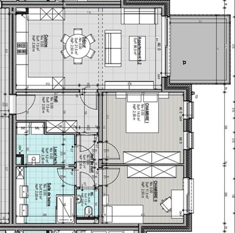 • Surface de la salle de séjour 21,5 m²