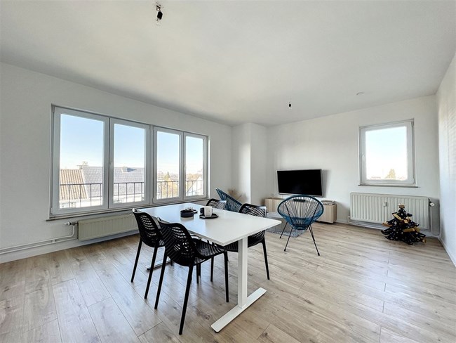 Lumineux appartement 2 chambres entièrement rénové situé sur une des artères principales d'Oupeye à proximité de toutes infrastructures urbaines. Vous bénéficierez d'une salle de douche, d'une cuisine équipée, d'un garage, d'un balcon avec vue dégagée et d'une cave. Toiture et châssis D.V. récents.