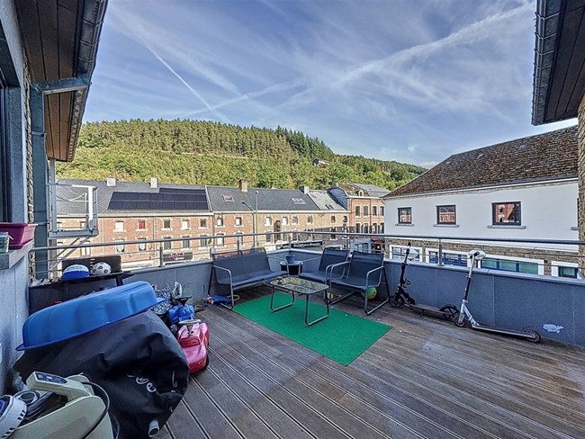 Appartement 2 chambres situé au premier étage. Vous profiterez d'un séjour donnant sur une belle terrasse, d'une cave et d'un emplacement de parking intérieur privatif. A seulement 25 minutes de Liège et 1 heure du Luxembourg.