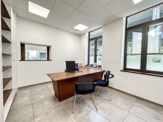 Proche du centre ville et à 2 pas du jardin Botanique, rez de chaussée commercial comprenant une salle d'attente, une réception administrative, deux bureaux, une cuisine, quatre garages ainsi qu'un WC. Vous profiterez d'un accès aisé à vos bureaux tout en évitant la circulation de la ville. Loué avec mobilier existant.