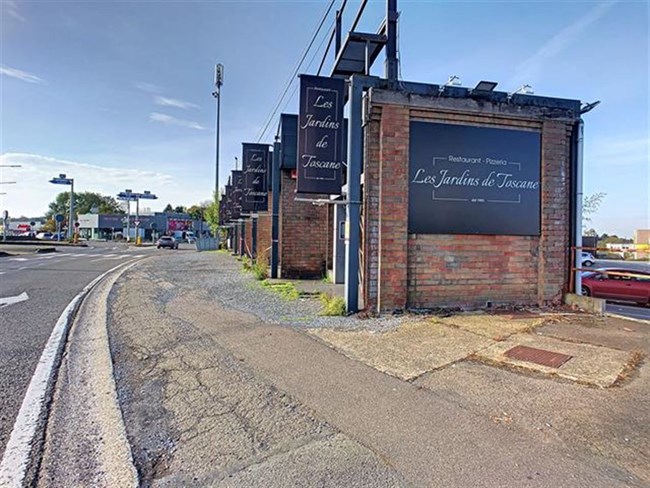 Grande surface commerciale d'environ 300 m² avec +/- 40 m² de caves, située sur un axe très fréquenté. Vous bénéficierez d'une visibilité optimale. Très belle opportunité pour y installer une activité professionnelle (anciennement restaurant). Vaste parking à l'arrière du bâtiment, proche des axes autoroutiers.