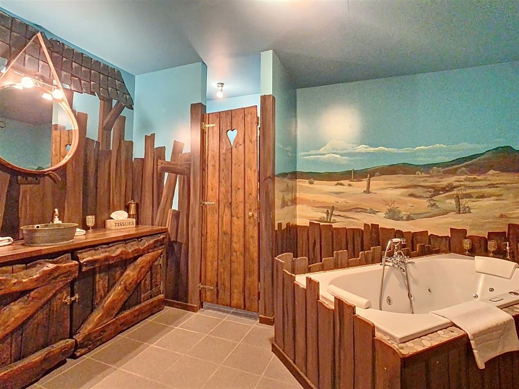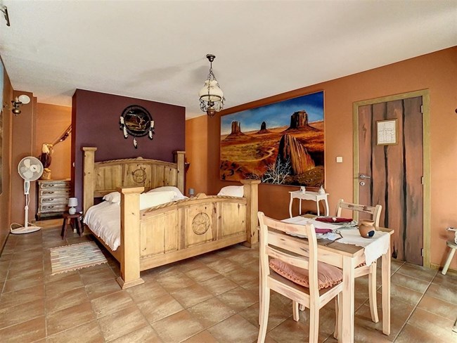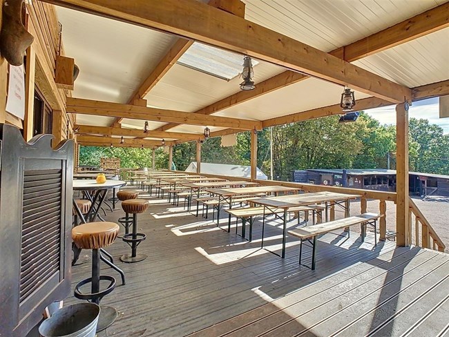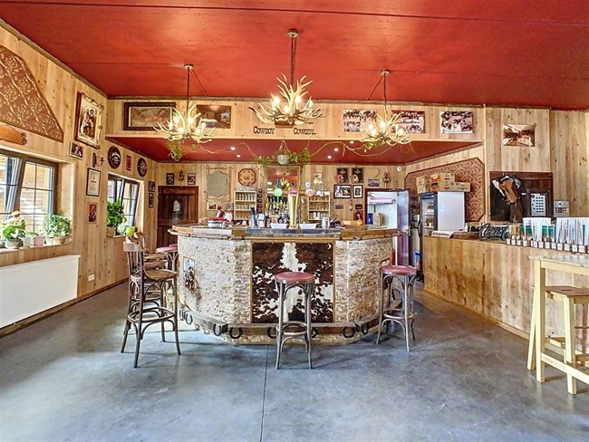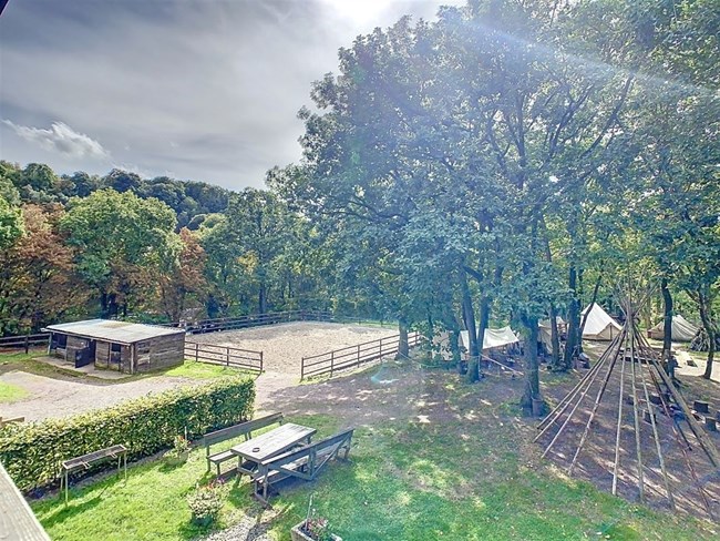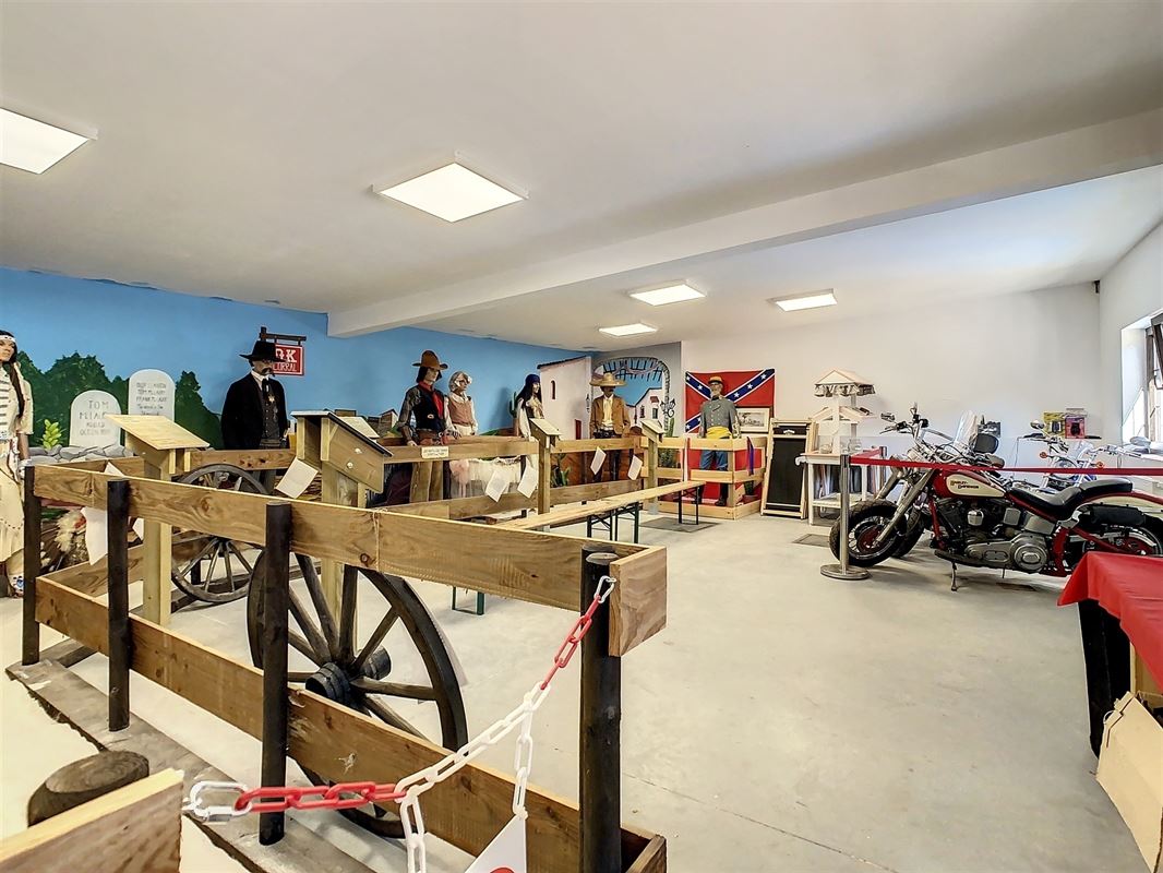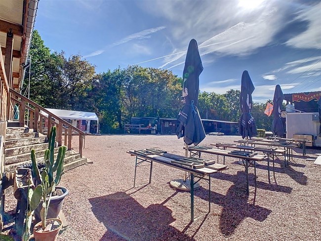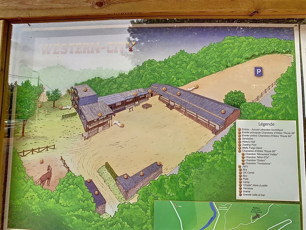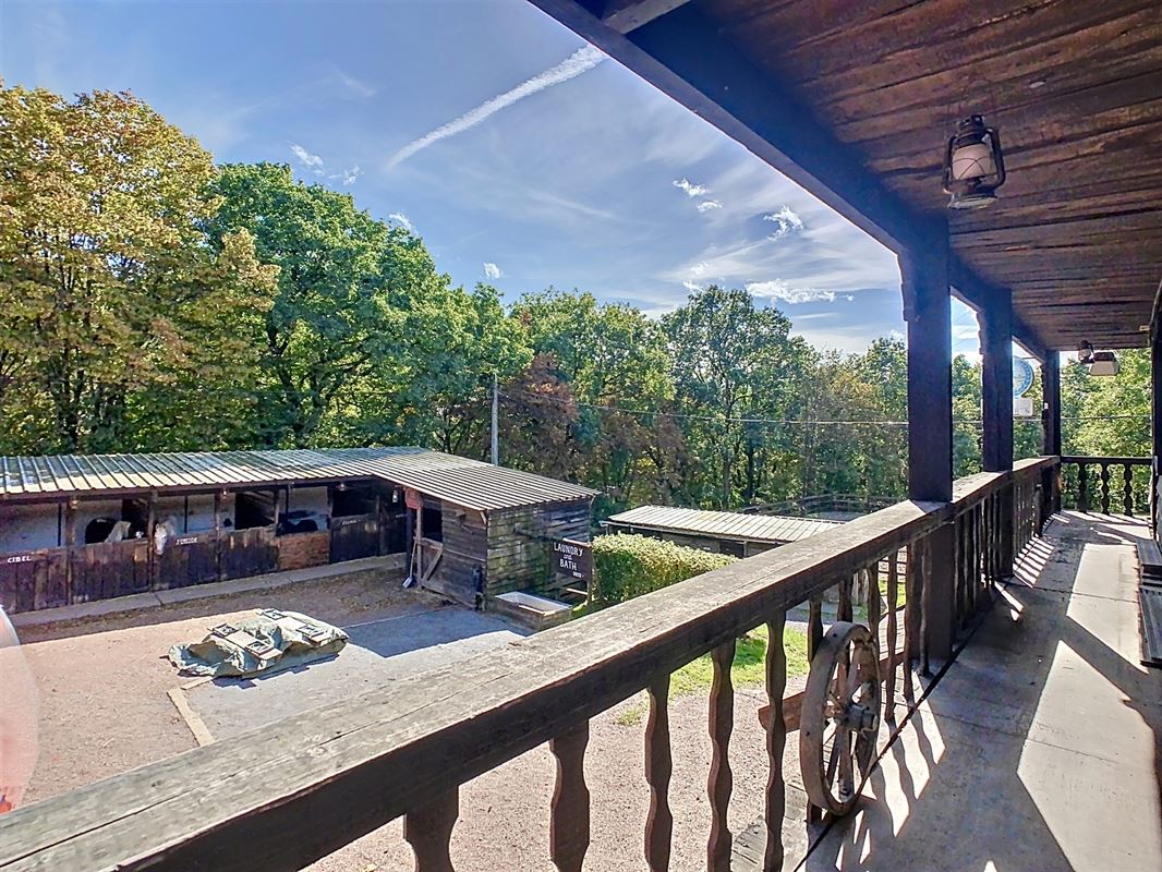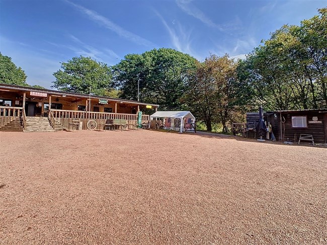 Niché à l’orée d’un bois et dans une rue en cul de sac, ce domaine offre diverses possibilités d’exploitation. Actuellement vous y trouverez : un saloon avec scène, bar & cuisine ; 4 chambres d’hôtes ; un bungalow privatif ; une salle de musée ; une piste équestre & 8 boxes ainsi que diverses installations complémentaires (aire de stationnement, bivouac,…).