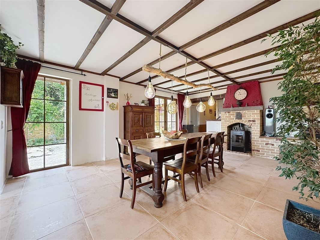 À l’extérieur, un grand jardin arboré idéal pour les enfants et les moments en famille, des annexes pour le rangement ou atelier et un étang apportant charme et sérénité.