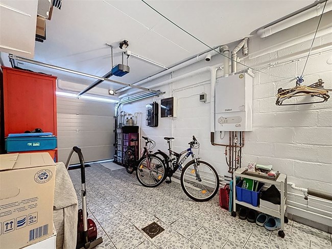 Dès votre arrivée, vous bénéficiez de deux emplacements de parking extérieurs ainsi que d’un garage pratique, équipé d’un portail électrique et d’un espace buanderie.