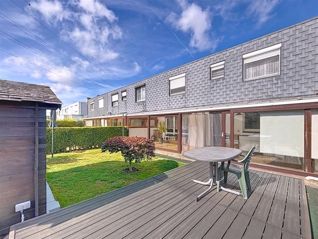 Le rez-de-chaussée vous accueille avec des espaces pensés pour le confort et la convivialité : un vaste séjour prolongé par une véranda lumineuse, s’ouvrant sur un agréable jardin cosy avec terrasse — un cadre parfait pour se détendre ou recevoir.